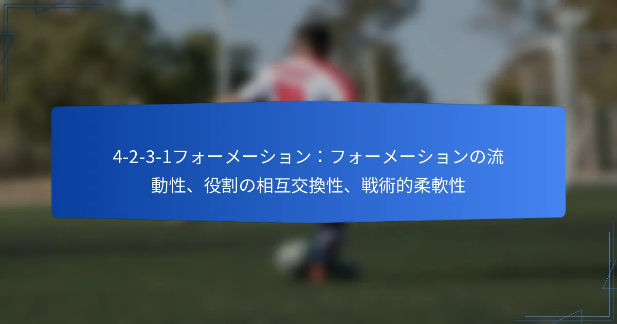 4-2-3-1サッカーフォーメーションは、4人のディフェンダー、2人のセンターミッドフィールダー、3人のアタッキングミッドフィールダー、1人のフォワードを組み合わせた戦略的な配置であり、守備の強さと攻撃の創造性を兼ね備えています。この多様なセットアップは、中盤のコントロールを維持しながら、守備と攻撃の間で迅速な移行を可能にするため、多くのチームに好まれています。選手の役割と戦術的柔軟性を理解することは、このフォーメーションの効果を最大化するために重要です。