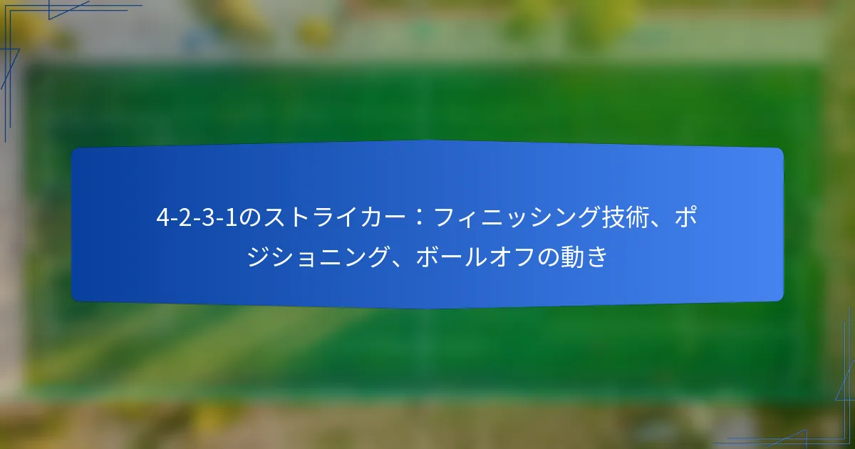 4-2-3-1フォーメーションにおいて、ストライカーはスキルと精度を要するさまざまなフィニッシングテクニックを通じて得点機会を変換する重要な役割を果たします。適切なポジショニングとミッドフィールダーとの効果的なコミュニケーションは、これらのチャンスを最大化するために不可欠であり、オフ・ザ・ボールの動きはスペースを作り出し、ディフェンダーを混乱させるのに役立ちます。これらの要素を理解することで、ストライカーの効果的なプレーと試合全体への影響を大幅に向上させることができます。 4-2-3-1フォーメーションにおけるストライカーのための主要なフィニッシングテクニックは何ですか? 4-2-3-1フォーメーションにおけるストライカーの主要なフィニッシングテクニックには、得点機会を効果的に変換するためのさまざまな方法が含まれます。これらのテクニックは得点チャンスを最大化するために不可欠であり、スキル、精度、状況認識の組み合わせを必要とします。 フィニッシュの種類:ボレー、ヘディング、プレースメント ストライカーは、ボレー、ヘディング、プレースメントなど、いくつかのタイプのフィニッシュを利用します。ボレーは、ボールが地面に触れる前に打つことで、優れたタイミングと体のポジショニングが求められます。ヘディングは、主にクロスやセットプレーからボールを頭で方向付けることで、良好なジャンプ力と空間認識が必要です。 プレースメントフィニッシュは、パワーよりも精度に焦点を当て、ストライカーがボールをネットの隅に滑り込ませることを可能にします。このテクニックは、ゴールキーパーとの一対一の状況で特に効果的です。各フィニッシュのタイプにはそれぞれの文脈と適用があり、ストライカーにとって多様性が重要です。 プレッシャー下でのフィニッシングテクニックの実行方法 プレッシャー下でフィニッシングテクニックを実行するには、冷静さと迅速な意思決定が必要です。ストライカーは、ディフェンダーが迫ってくるときや、ゴールキーパーが進行しているときに冷静さを保たなければなりません。トレーニング中に高圧のシナリオで練習することで、試合の状況をシミュレートし、パフォーマンスを向上させることができます。 効果的な方法の一つは、選手がディフェンスのプレッシャーの下でパスを受けた後にフィニッシュを行うシューティングドリルを練習することです。これにより自信が高まり、本能が鋭くなり、ストライカーは実際の試合状況でどのフィニッシングテクニックを使用するかを迅速に決定できるようになります。 異なるシナリオにおけるシュート選択の重要性 シュート選択はストライカーにとって重要であり、正しい選択が得点の可能性に大きな影響を与えることがあります。ゴールキーパーの位置、シュートの角度、ディフェンダーの存在などの要素が意思決定に影響を与えるべきです。ストライカーはこれらの要素を迅速に評価し、最も効果的なフィニッシングテクニックを選択しなければなりません。 例えば、ゴールキーパーがラインを離れている場合、チップショットが最良の選択肢かもしれません。逆に、厳しくマークされている場合は、素早いプレースメントショットがより適切かもしれません。これらのシナリオを理解することで、ストライカーはチャンスをゴールに変換する能力を向上させることができます。 フィニッシングスキルを向上させるための一般的なドリル フィニッシングスキルを向上させるために、さまざまなドリルをトレーニングセッションに組み込むことができます。一つの人気のあるドリルは、コーンを設置してシューティングレーンを作成し、選手がさまざまな角度から異なるタイプのフィニッシュを練習できるようにすることです。これにより、精度と適応力が向上します。 もう一つの効果的なドリルは「一対一」のシナリオで、ストライカーが限られた時間内にゴールキーパーに対してシュートを打つことです。このドリルは、プレッシャー下での迅速な意思決定と実行を強調し、実際の試合状況において重要です。これらのドリルを定期的に練習することで、ストライカーのフィニッシング能力に目に見える改善がもたらされるでしょう。 成功したストライカーのフィニッシングテクニックの分析 成功したストライカーを研究することで、効果的なフィニッシングテクニックに関する貴重な洞察を得ることができます。リオネル・メッシやクリスティアーノ・ロナウドのような選手は、卓越したシュート選択とフィニッシングスキルで知られています。彼らの動き、体のポジショニング、意思決定を分析することで、将来のストライカーにとって実用的な戦略が明らかになります。 例えば、両選手はしばしばゴールキーパーの動きを予測し、それに応じてシュートを調整する重要性を示しています。これらのテクニックを模倣し、トレーニングに取り入れ