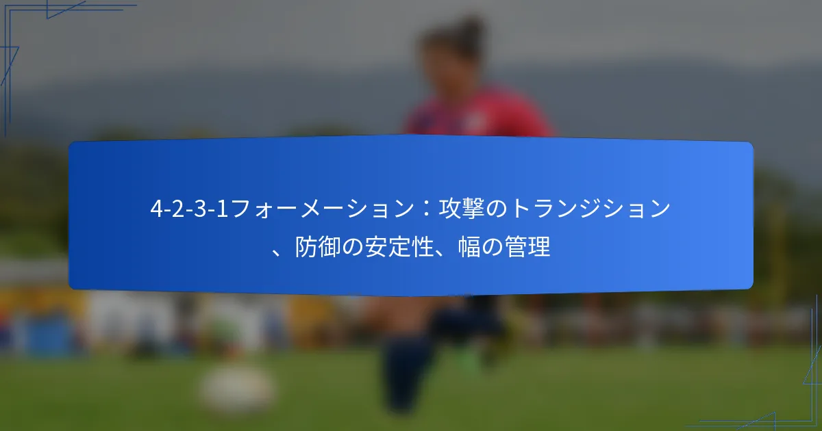 4-2-3-1フォーメーションにおけるビルドアップフェーズは、ボールを守備から攻撃に移行させるための構造化された動きと戦略的なポジショニングを含みます。このフォーメーションは、スペーシング、選手の役割、効果的なコミュニケーションを強調し、コントロールを維持し、得点機会を創出します。